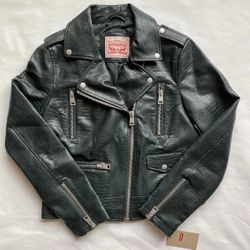 Levi’s Women’s Faux Leather Motorcycle Jacket Medium Petrol Green Crocodile New!$90Bakersfield, CA
