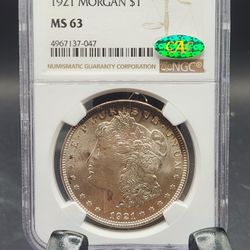 1921 P NGC MS63 Morgan Silver Dollar CAC $1 US Mint $120Bakersfield, CA