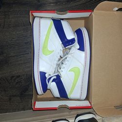 Nike Air Definition trainers in white and navy blue.$55Bakersfield, CA