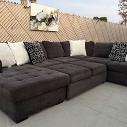 GRAY SECTIONAL W/ BED + STORAGE With OTTOMAN 🚚 $580Pumpkin Center, CA