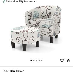 Giantex Small Accent Chair with Ottoman Set, Upholstered Barrel Chair with Footrest, Modern Accent Armchair with Ottoman, Round Club Chair for Living $75Bakersfield, CA