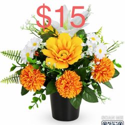 XONOR Artificial Grave Flowers in Pots, Potted Artificial Chrysanthmums Lily Daisy Flowers for Home Decor, Outdoor Cemetery Funeral Grave Decoration ($15Bakersfield, CA