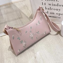 Flower Embroidered Small Shoulder Bag for Women Teens Girls, Floral Print Embroidery Mini Purse, PU Handbag with Zipper Closure, Pale Pink Color *NEW*$8Pumpkin Center, CA