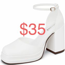 Women Chunky High Heels: Comfortable Ankle Strap Platform Pumps, Dress Wedding Shoes Party Bridal Graduation Pumps Black White Hot Pink Size 6-11 $35Bakersfield, CA
