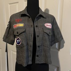 Forever 21 Gray plaid Casual Button Down Shirt with stylish patches$10Bakersfield, CA