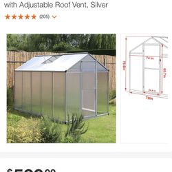 6 ft. x 10 ft. Walk-In Garden Greenhouse with Adjustable Roof Vent, Silver$400Bakersfield, CA