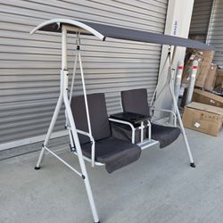 2 Person Porch Swing with Stand, Outdoor Swing with Canopy, Pivot Storage Table, 2 Cup Holders, Cushions for Patio, Backyard, Gray$100Bakersfield, CA