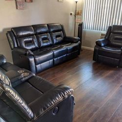 New Black Recliner Couch , Loveseat And Chair Only $50 Down Payment $1,700Bakersfield, CA