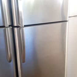 FRIGIDAIRE TOP FREEZER STAINLESS STEEL REFRIGERATOR EVERYTHING PERFECT CONDITION WITH WARRANTY AND DELIVERY 🚚 MESSAGE ME FOR MORE DETAILS $500Bakersfield, CA