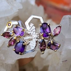 Ooak Bee Ring Amethyst And Rhodolite Gemstones Size 8$30Bakersfield, CA