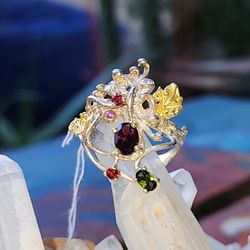 Garnet Amethyst And Tourmalin Sterling Silver Ring With 14kgold Accents Size 8$36Bakersfield, CA