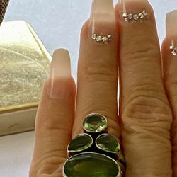 Silver Plated And Faux Peridot Crystal Statement Ring$25Bakersfield, CA