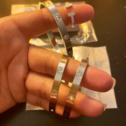 Set 3 Pieces Earrings Bracelet And Ring Color Silver Stainless Steel $10Bakersfield, CA