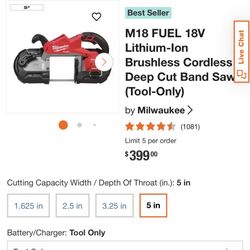 Milwaukee M18 Bandsaw Tool Only $120Bakersfield, CA