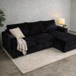 Black Corduroy Sleeper Sectional Couch w/ Storage & USB β Sofa$479Pumpkin Center, CA