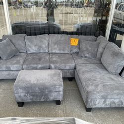 New Sectional With Ottoman $600 Corduroy Gray Couch New In Box !! Payment Plans Are Available !! $600Di Giorgio, CA