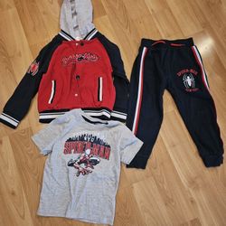 Boys Size 5 Spiderman Outfit. Varsity Jacket, Shirt And Sweat Pants.$11Pumpkin Center, CA