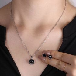 3 Piece Black Round Stone & Silver Clam Shell Set, Pendant Chain Necklace & Stud Earrings, Costume Fashion Jewelry for Women & Girls *NEW In Plastic*$6Pumpkin Center, CA