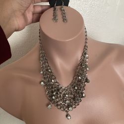 Brand New Silver With Rhinestones Necklace Set$5Bakersfield, CA