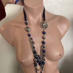 Brand New Navy Blue & Silver Long Glam Necklace Set$5Bakersfield, CA