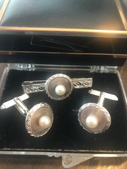 Silver and pearl cuff links and tie tack$20Bakersfield, CA