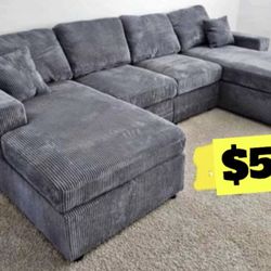 BRAND NEW 7X9FT AND 9X5.5FT SECTIONAL CHAISE SOFA WITH SLEEPER, CORDOROY GUNMENTAL FABRIC $1,199Bakersfield, CA