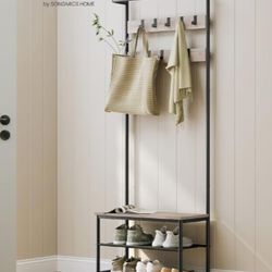 Hall Tree with Bench and Shoe Storage, Entryway Bench with Coat Rack Stand and Shoe Rack, 9 Movable Hooks, Top Bar, Fabric Shelves, Industrial, Greige$40Bakersfield, CA