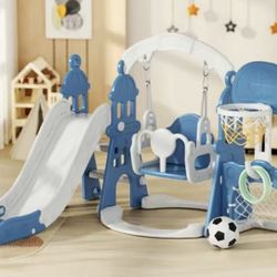 4-in-1 Kids Slide and Swing Set with Basketball Hoop Climbing Ladder Multifunctional Play Center for Active Fun Age 1+ Years Indoor Outdoor Playset Sa$80Bakersfield, CA