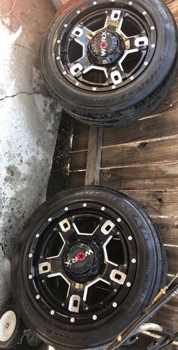 rims for sale, 80% tire of life, universal rims could be used on a jeep ram etc.. price is firm$900Delano, CA