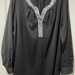 Chico’s Sheer Crene/White Embellished Tunic blouse With Silver Designs $30Bakersfield, CA