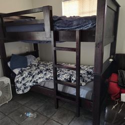 Twin high bed with ladder. Lots of room for desk and or book shelve. Very sturdy.$50Bakersfield, CA