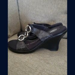 Dr, Scholls Avalon Black Silver Slip On Wedge Sandals Original Size 8M $15Bakersfield, CA