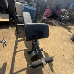 Workout Bench Disc Weights 45 Lb 25 Lb 35 Lb Olympic Bar Adjustable Bench Pull Down Attachment For Back And Leg Attachment For Legs And Preacher Curl $300Bakersfield, CA