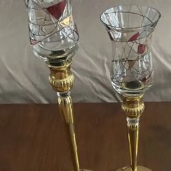 Vintage Set Of 2 Partylite Weighted Bottom Brass Candlesticks With Mosaic Peglites 9"$25Bakersfield, CA