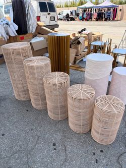 Set of 5 Natural Woven Rattan Wicker Plant Stands, Farmhouse Side Table Cylinder Cake Pedestal Dessert Display Stands - 20",21",24",29",36"$150El Monte, CA