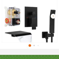 Black Shower System with Tub Spout, Waterfall Tub Faucet with 12 in. Rain Shower Head System Handheld Shower Head Set$160Bellflower, CA