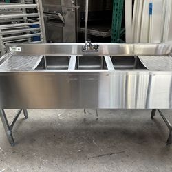 60” Under Bar 3 Compartment dish was sink stainless steel nsf with dual drain boards and Faucet like new ready for pickup or delivery$499Orange, CA