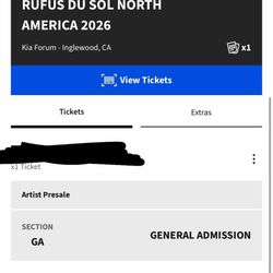 Rufus Du Sol North America 2026 (2 Tickets)$300Los Angeles, CA