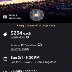 Opening Day 2 tickets field level$425City Of Industry, CA