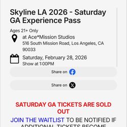 SKYLINE STAGE ACCESS TICKETS FOR SUNDAY 2 AVAILABLE$300Glendale, CA