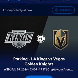 2 TICKETS - LA KINGS VS Golden Knights - 2.25 Sec. 312 - Row 6 -- Aisle Seats$25Altadena, CA