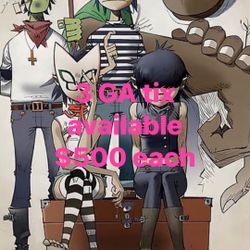 Gorillaz GA 3 Tix Available $500Los Angeles, CA