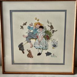 Vintage Norman Rockwell counted cross stitch courting piper frame 24x24$35Los Angeles, CA