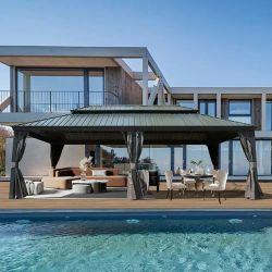 14' X 24' Hardtop Gazebo, Upgraded Metal Gazebo with Drainage System, Dual-Layer Galvanized Steel Roof, Curtain and Netting, Outdoor Shelter Canopy fo$2,100San Dimas, CA