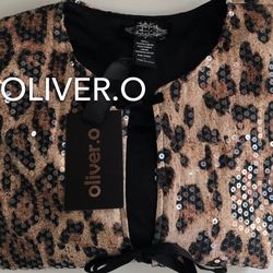 (NEW) (1 AVAILABLE) WOMEN’S OLIVER.O LEOPARD PRINT SEQUIN TIE FRONT SMOCK BLOUSE - SIZE: LARGE $50Compton, CA