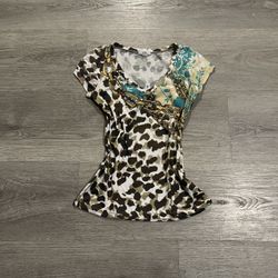 Vintage Caché Women’s Y2K Leopard Print Chained Gem V-Neck Top$10Los Angeles, CA