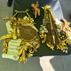 Vintage Syroco 1981 Gold Wall Decor Lot 3 Musical Plaques Cherub USA Homco Style$85Irwindale, CA
