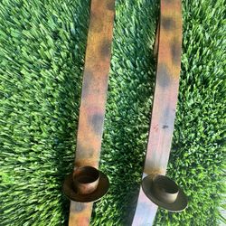 Two Vintage Custom Decorator Candle Holders Made From Gilded Leaf Springs With Attached Wall Mounts)$85Alhambra, CA