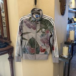 Adidas Women Gray Floral Botanical Track Jacket with White Stripes Size Medium$60Huntington Beach, CA