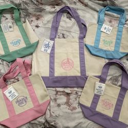 Trader Joe's LARGE Lavender Canvas Tote Bag AND 4 Mini Pastel Canvas Tote Bags$70Cypress, CA